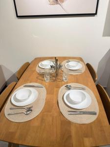 Each unit includes two beds, air conditioning with individual control, and a seating area that overlooks the city. A full kitchen features a refrigerator, dishwasher, electric kettle, dining table and tea and coffee making facilities. Bathrooms come equipped with showers, hairdryers, complimentary toiletries including shampoo and conditioner. Additional in-room amenities include flat-screen TVs with streaming services like Netflix, washing machines for laundry needs, irons and bed linens.