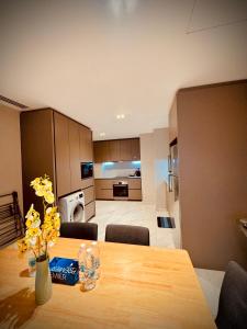 Accommodation options vary from one- to three-bedroom suites, each featuring private entrances, fully equipped kitchens with microwaves, stovetops, refrigerators and kitchenware. Rooms are fitted with flat-screen TVs, washing machines, soundproof walls, seating areas including sofas and dining tables. Bathrooms include bidets, showers or bathtubs along with complimentary toiletries, slippers and hairdryers. Additional in-room extras comprise irons with ironing boards, baby cots or cribs upon request as well as bed linens and towels.