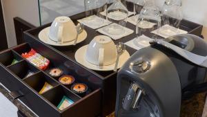 Rooms accommodate up to three adults or two adults with children on existing beds, featuring Super King-sized beds or twin Super Single beds, ergonomic lounge chairs with ottomans in select suites, work areas, coffee machines, tea-making facilities, kettles, extra pillows, bathrobes, safety deposit boxes, steam irons with ironing boards, hairdryers and large LED televisions. All accommodations offer high-speed Wi-Fi along with soundproofed walls for added comfort.