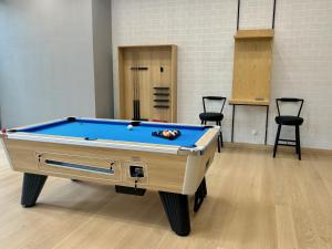 This air-conditioned apartment features three bedrooms, three bathrooms equipped with showers and bidets, as well as slippers provided for guest comfort. The living room contains a flat-screen TV and work desk. Guests can prepare meals in the fully equipped kitchen that includes a stovetop, refrigerator, microwave, electric kettle, tumble dryer for clothes, and washing machine. Additional amenities include an iron, clothes drying rack, wardrobe or closet space, non-feather synthetic pillows along with towels and bed linen.