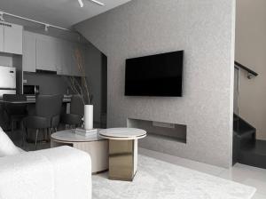 Accommodation includes one bedroom with air conditioning and heating for comfort throughout the year. Guests can enjoy a fully equipped kitchen with a minibar and kitchenette facilities alongside modern conveniences such as a washing machine and flat-screen TV.