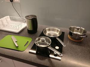 The accommodation includes one bedroom furnished with bed linen and towels, alongside a flat-screen TV for entertainment. Guests benefit from a fully equipped kitchen featuring an oven, microwave, stovetop, refrigerator, kitchenette setup as well as laundry facilities including a washing machine and tumble dryer. Additional in-room conveniences comprise heating, an iron, work desk and air conditioning.