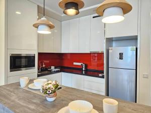 All'interno dell'appartamento gli ospiti troveranno due letti e un futon oltre all’aria condizionata in tutti gli ambienti. La cucina completamente attrezzata offre piano cottura, frigorifero, lavastoviglie, microonde, utensili da cucina e tavolo da pranzo per preparare i pasti comodamente. Tra i servizi aggiuntivi vi sono area salotto con divano e divano letto, lavatrice, ferro da stiro con asse da stiro e armadio o spazio guardaroba, il tutto su pavimenti moquettati con cuscini di piume.