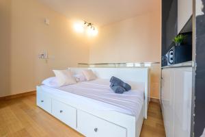 The spacious apartment comprises a living room, two separate bedrooms, and two bathrooms equipped with hot tubs and bathtubs. Guests will find an air-conditioned environment featuring a flat-screen TV, wardrobe, sofa bed, non-feather pillows, and tile flooring. The fully equipped kitchen contains a refrigerator, microwave, electric kettle, kitchenware as well as a dining table. In-room amenities also include an iron, washing machine, towels, bed linen and bathrobes.