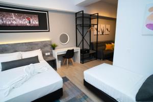 Each unit is equipped with two beds along with a fully fitted kitchen that includes a refrigerator, microwave, electric kettle, and bar area. Guests will find a seating area with a flat-screen TV as well as a work desk. Private bathrooms come stocked with complimentary toiletries such as shampoo and feature hairdryers for added comfort.