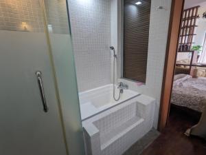 This soundproofed apartment includes one bedroom with two beds, a separate living room, and one bathroom equipped with both bathtub and walk-in shower facilities. In-room amenities feature bed linen, towels, slippers, ironing facilities including iron and ironing board, individually controlled air conditioning, sofa seating area, work desk, wardrobe closet, clothes drying rack, washing machine and hardwood flooring throughout.