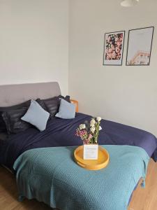 Accommodation comprises one bedroom with one bed, a fully equipped kitchen featuring a microwave, refrigerator, electric kettle and dining table. The living area includes seating with a sofa and flat-screen TV. Guests benefit from air conditioning that can be individually controlled within the room as well as convenient extras like an iron, washing machine and clothes drying rack.