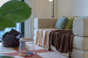 Inside the apartment, guests will find one bedroom along with two bathrooms. A fully equipped kitchenette allows for convenient meal preparation, complemented by air conditioning throughout the space and direct balcony access.